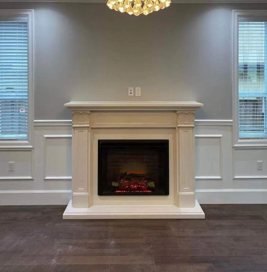 The mantel package includes a meticulously crafted mantel surround, and a stylish electric fireplace. Customizable stone options are available.